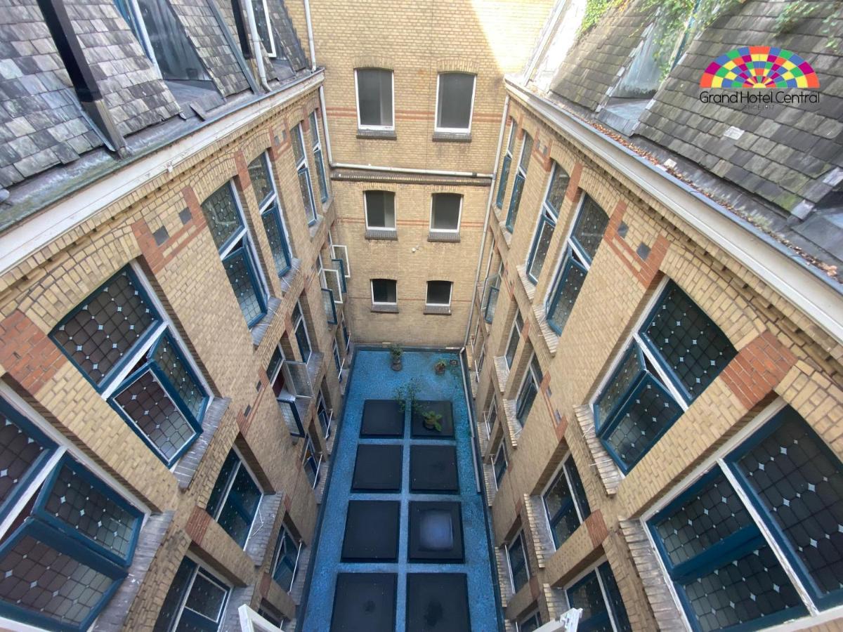 The lounge bar appears inviting, set with seating and tables for evening drinks. Exterior shots capture the building’s central location, surrounded by the bustle of Hofplein Square and close to the striking architecture of Rotterdam’s city center.